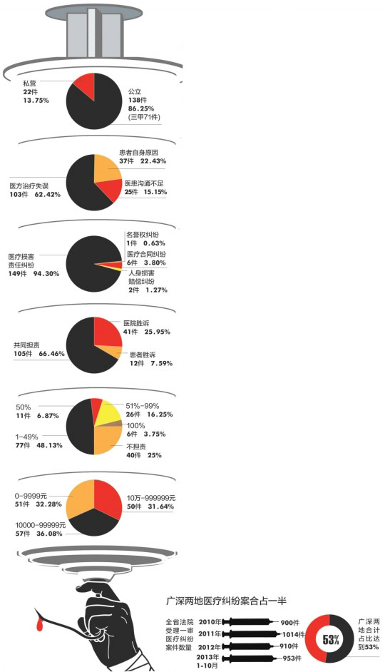 南都记者根据中国裁判文书网,梳理了去年1月以来158起广东医疗纠纷判决书,发现由于患者专业知识与举证能力薄弱,在医患纠纷中相对处于不利的地位。但大多医疗纠纷的判决结果,都是由医患两方共同担责。纠纷一起,两方均无赢家。