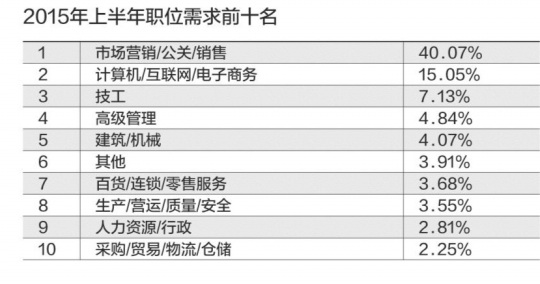 从需求的专业情况来看,工商管理类专业在企业所需专业中成为最热门专业类别,占总需求的18.76%。工商管理类专业中需求量最大的是市场营销专业。从行业招聘需求看,营销类岗位居主力,相比去年同期,电子信息类需求仍有较大增长。与此相关的互联网行业技术人才广受追捧,应用软件企业将扩大招聘规模。互联网行业争相抢夺技术类人才,其中电商平台和网络企业都希望第一时间抢占移动端入口,所以移动端开发工程师也将是热门的技术岗位之一,对后端开发的要求也使得后台开发工程师相关职位炙手可热。需要注意的是,金融行业市场需求差异明显,高端人才备受青睐,中低端人才竞争激烈。国有股份制商业银行开始抢占互联网金融领域,合资基金公司的发展逐步成熟,银行业和基金业对高端人才的需求增长较快。同时,保险业一直是吸纳人才的佼佼者,其中,以营销高手、各类专业人才和投资经理为保险行业最缺乏的三类人才。就整个金融行业看,初级人才供大于求,用人单位为了节约人力和培养成本,提高了从业人员的进入门槛。报告指出,大部分企业在2015年均有人才招聘计划,其中比较明显的是民营企业招聘规模继续扩大,相当比例的民营企业愿意扩大招聘规模,招聘规模虽均在10至50人之间,但招人愿望比较迫切;同时,外资企业招聘技术人员比重较高,技术类职位占一半以上,但用人比较谨慎。(记者王道斌)