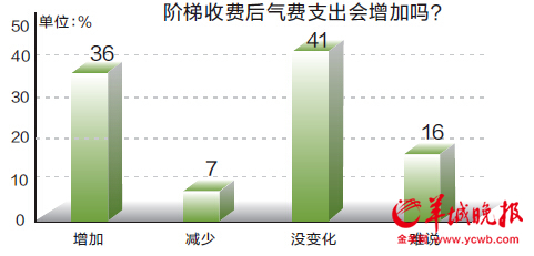 家中使用天然气的受访市民中,认为如果实行阶梯收费,家中天然气费支出会“增加”的人较多,为36%;只有7%的市民认为会“减少”;还有41%的市民认为“没变化”。