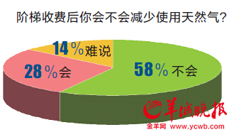 对“阶梯收费会不会使市民减少用天然气”,接近六成的受访市民表示“不会”,比例为58%;表示“会”的市民则不足三成,为28%。