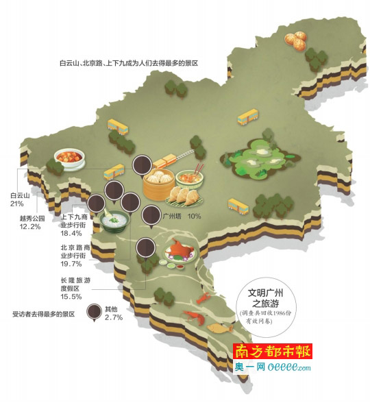外地游客来到广州游玩,最需要的是旅游指引。调查显示,“详尽的景区路线”成为调查者对宣传手册最大的期待。此外,“旅游服务业从业人员对游客的态度也很关键,小到一个出租车司机、机场咨询客服或者酒店服务员,对游客的服务水准仍需提高。再者,广州市民如果对外地游客都很N ice,自然也是给广州加分。”在旅行社从事地接工作的方先生说。