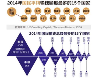 从输钱总额上来说,中国人输954亿美元比2013年的760亿美元又有了大幅增长。而在十年之前,中国在这一资料上仅仅排名全球第十。