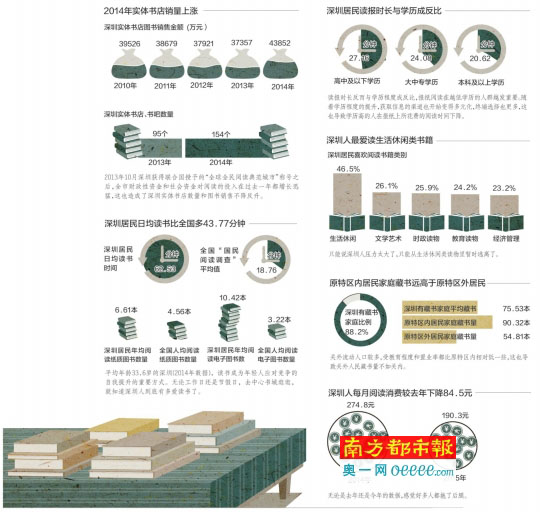 南都讯《2015年深圳阅读指数研究报告》于昨日发布,作为全球全民阅读典范城市,报告显示过去一年深圳居民各种媒介阅读率、阅读量、阅读时长、家庭藏书量等均远超过全国平均水平,实体书店图书销量更上涨6000多万元。