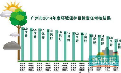 新快报讯 记者罗仕报道 广州市政府官网近日公布了《广州市人民政府关于2014年度环境保护目标责任考核结果的通报》,在广州12区(包括原萝岗区)中,南沙得分最高,白云得分垫底。