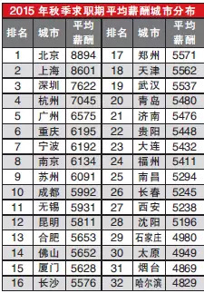 2015年秋季全国城市求职平均薪酬 广州第五