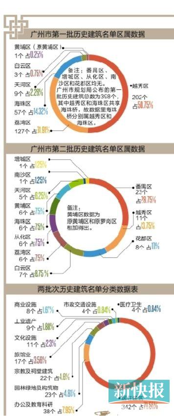 近日,《广州市历史文化名城保护条例》(以下简称“条例”)经广州市第十四届人大常委会第四十四次会议表决通过,条例从多方面规定了保护措施。新快报记者了解到,早在去年1月,广州市政府便确定了广州市第一批398个历史建筑名单,同年12月,广州市规划局便将第一、二批历史建筑名单向社会公布,本次通过表决的条例将进一步对这些进入名单的历史建筑进行更为完善的保护。您有关注身边的历史建筑吗?您知道居住区域内有多少历史建筑?为此,记者为您一一盘点。