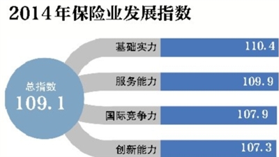 12月7日,中国保险行业协会联合人民网在京首度发布中国保险发展指数。2014年中国保险发展指数为109.1,较2013年上升了2.8个点。从总指数看,保险业的发展呈现逐年上升态势。