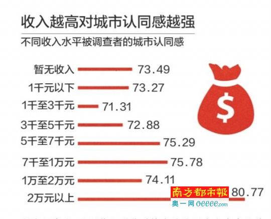 调查还发现,不同收入群体对城市的认同感也存在显著差异,整体上看,收入越高,对城市的认同感也越高。