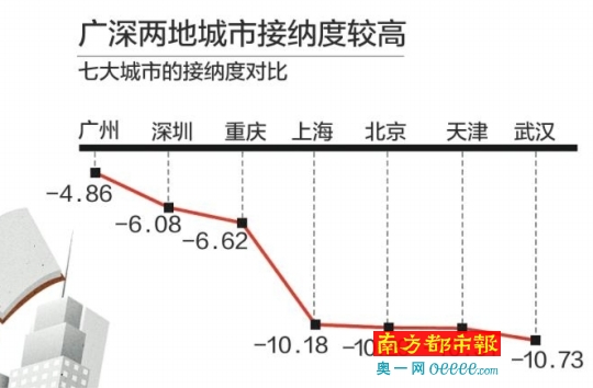 数据显示,广州接纳度最高,深圳、重庆接纳度排第二第三,表明这三个城市外来人口和本地人口对城市认同的群体差距较小,而上海、北京、天津和武汉的数值差均超过10。报告指出,城镇化进程中需要重视群体及文化内部融合。