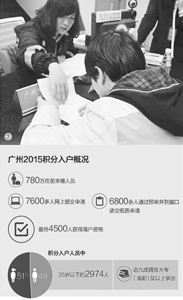 12月21日,广州市公布2015年积分制入户名单,来自北京、福建等29个省(市、自治区)的4500名外来人口正式落户广州……