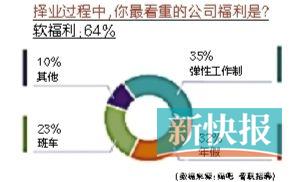 《90、95后职场私密调查》显示,64%的“90后”在择业中更看重公司的软福利。在软福利中,弹性工作制以35%的占比位列第一,年假以32%的占比位列第二,成为“90后”选择供职公司的重要标准。