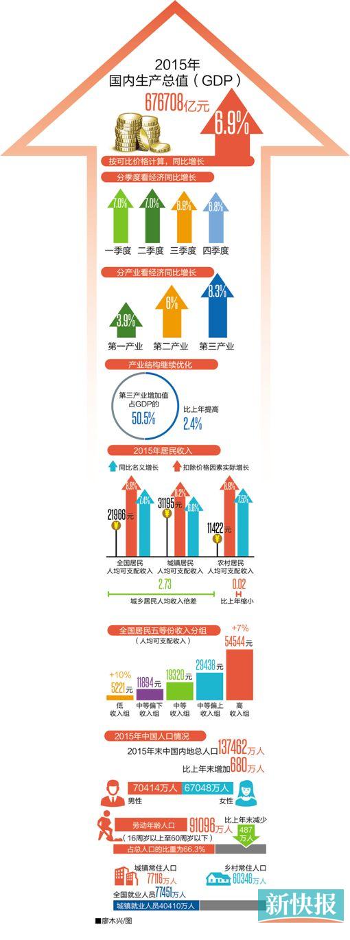 2015年经济“成绩单”公布,GDP增长6.9%,居民收入实际增长7.4%