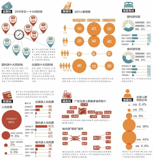 根据广东省旅游局的最新统计显示,今年五一期间,广东市民青睐周边游,而自驾游更是带旺了各地度假休闲市场。那么,今年五一广东市民的出行趋势具体有哪些特点呢?为此,南方都市报联合阿里旅行对广东人2016年五一出游行为趋势进行了调查和分析。