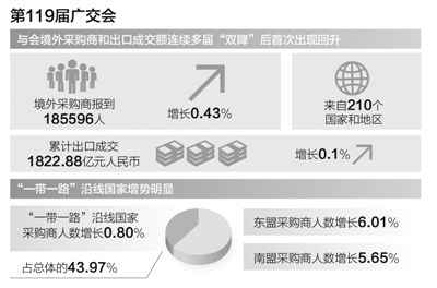 第119届广交会5日在广州落下帷幕。令人欣慰的是,本届广交会境外采购商报到185596人,比2015年春交会增长0.43%;累计出口成交1822.88亿元人民币(折合280.84亿美元),比2015年春交会增长0.1%。尽管增长微弱,但却令人欣慰。这是近年来连续多届广交会出口成交额和与会境外采购商数量“双降”后首次出现回升,对于我国外贸出口“晴雨表”与“风向标”的广交会来说,其意义不言而喻。