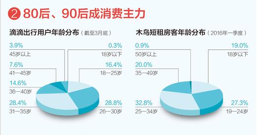 80后、90后成主力消费人群。80后、90后伴随移动互联网成长,热爱共享,崇尚个性。蚂蚁短租数据显示,20—24岁、25—29岁这两个年龄段在2015年国内自由行的人群结构中,已占44%。在智能出行领域,滴滴出行的用户更是被26—30岁、31—35岁、18—25岁三个年龄段占据了前三,共达73.6%。不难判断,随着移动互联网的进一步普及,80后、90后正成为消费主力军,必将引领未来消费风潮。