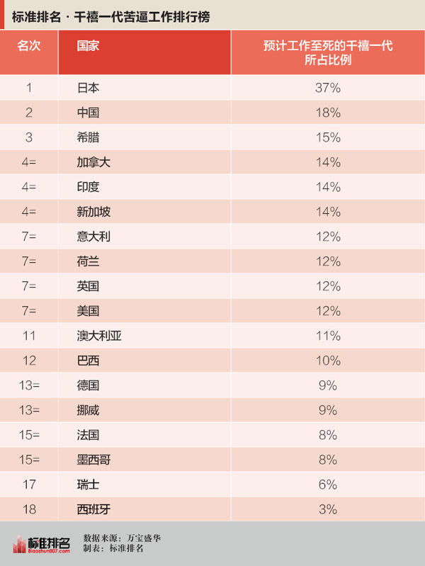 报告称,大多数千禧一代都将面临比他们父辈更长的工作年限。在美国,12%的千禧一代认为他们会一直工作到死。在日本,这个数字更加突出,高达37%,在18个被调查国家中排名第一。在中国,这一数字为18%,位居第二。经济低迷、失业率不断攀升的希腊排名第三,为15%。加拿大、印度和新加坡并列第四,为14%。