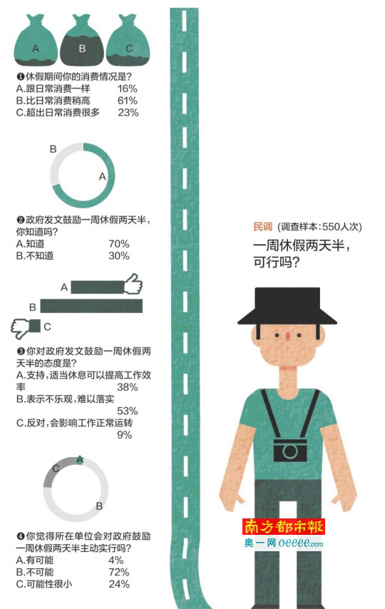2.5天休息若能落实,对上班族来说,绝对是一件世纪大事。“个人很有必要,国内多数地方2天是足够玩的,我就缺那0.5天用来出发啊。”市民田小姐笑道,在她看来,增加出来的半天时间,可以用来完成很多事情,如探亲、旅游、休息等。此外,工作时间减少,还能提高工作效率,“在工作量固定的前提下,工作时间减少,还能减少裁员,增加就业机会呢”。