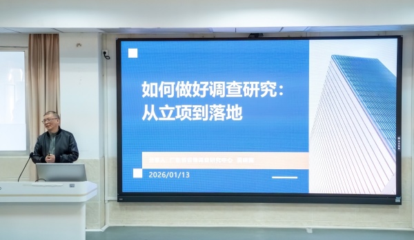 揭牌仪式后,省情中心学术总监莫建国结合自身20年调研经验,为现场师生带来了题为《如何做好调查研究:从立项到落地》的主题讲座,围绕如何确定调研目的、精准选题、用好方法、落地执行、善用工具等调查研究的关键环节,结合典型案例,深入浅出地阐释了调查研究各阶段的核心要点。