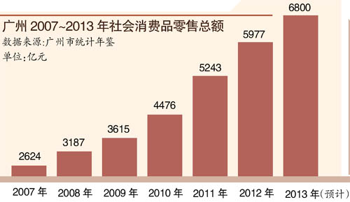 1~7月,广州的社会消费品零售总额增长达到15.7%。而北京上海等城市都是个位数增长。昨日,在《广州蓝皮书-广州商贸业发展报告(2013)》新闻发布会上,广州市经贸委副主任杨勇透露道。对于此增速,杨勇分析认为,广州的经济结构比较合理,消费理性。