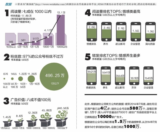 与阿健一样,诚小姐(化名)正苦苦挣扎在“吸粉”阶段。诚小姐是因为好友示范作用走进公众号,“朋友去年年初开的公众号,以做娱乐八卦为主,很快吸到10万粉丝,广告商便上门,现在她转发一条广告,至少有1万元至2万元的收入。”