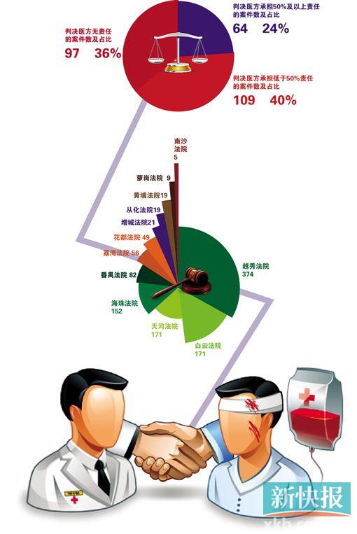 医患见诸公堂,结果如何?广州中院统计发现,近五年的二审案共270件,有64%是判令医疗机构承担赔偿责任。其中,有四成是要求医疗机构承担次要责任,有两成判定医疗机构承担主要责任的。