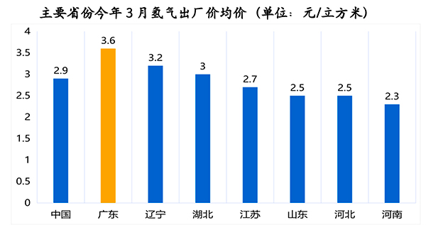 主要省份今年3月氢气出厂价均价(单位:元/立方米)