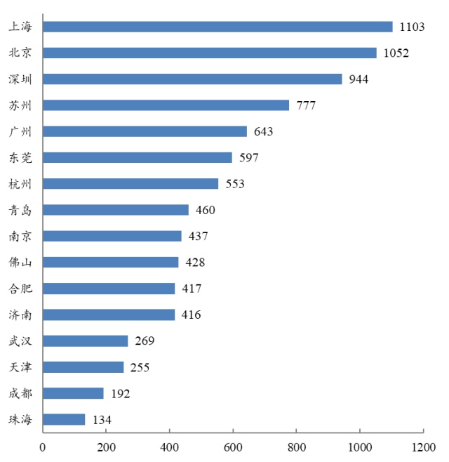 图1-1国内主要城市具身智能机器人企业数量情况